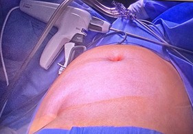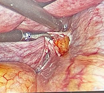 Under general anesthesia, laparoscopic approach was initiated. Abdominal insufflation was performed through the insertion of a Veress needle at Palmer ‘s point (Figure 2), followed by the placement of an umbilical trocar as the main port and two accessory trocars.