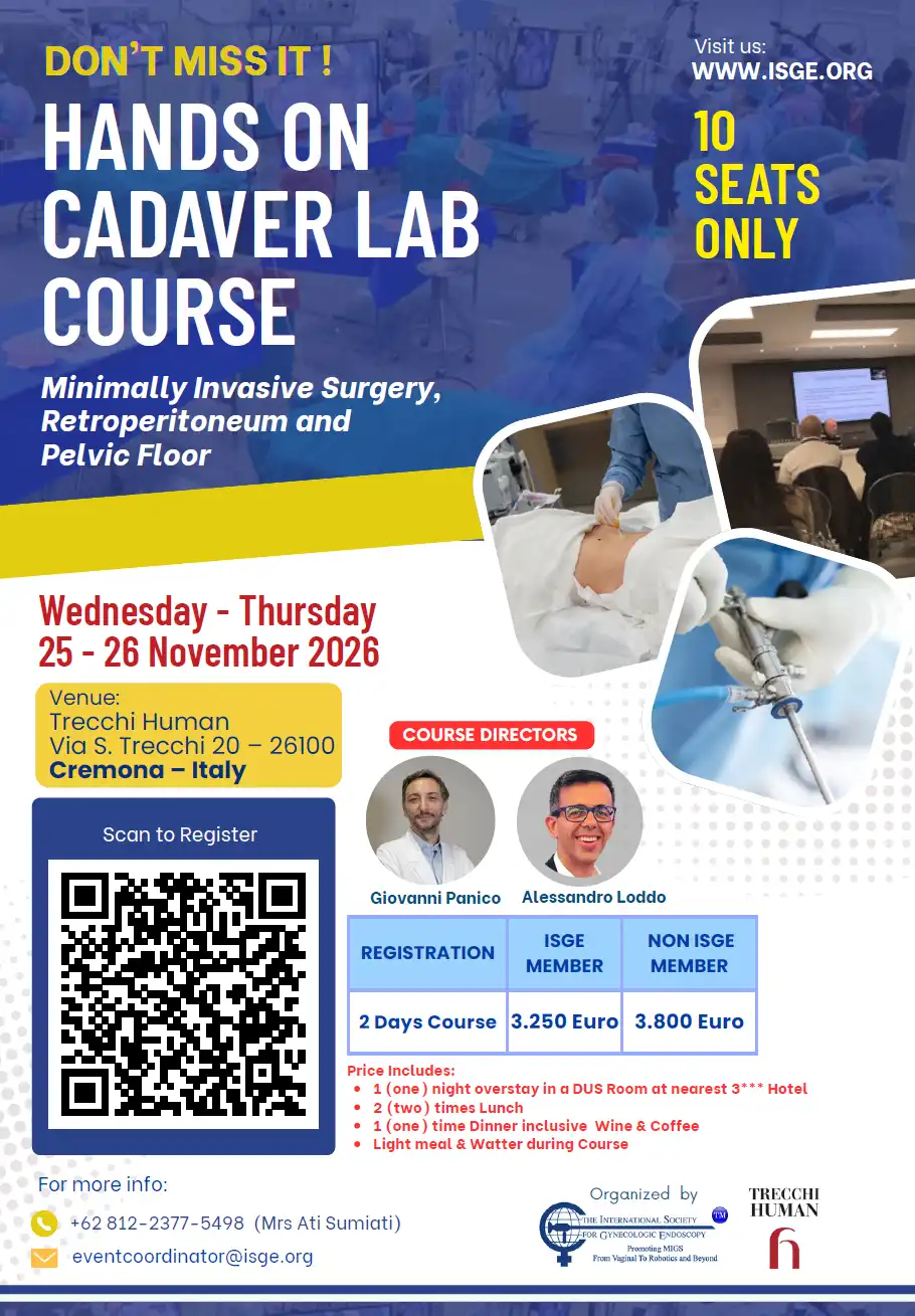 By participating in events organized by ISGE, you give permission for the International Society for Gynecologic Endoscopy to use photographs and videos taken during ISGE events, for promotional and marketing purposes. Full consent text available.